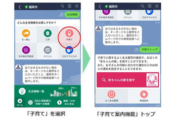 LINE、福岡市公式アカウントに「子育て案内機能」。おむつ交換場所検索