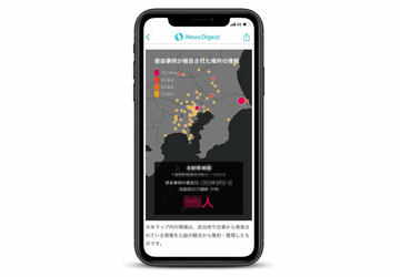 新型コロナの感染事例を地図上に表示。JX通信社「NewsDigest」
