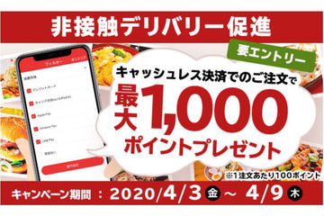 出前館、最大1,000ポイント貰える非接触デリバリーキャンペーン