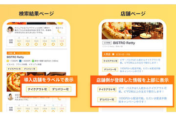 グルメサイト「Retty」、テイクアウト・デリバリー導入店舗の情報掲載