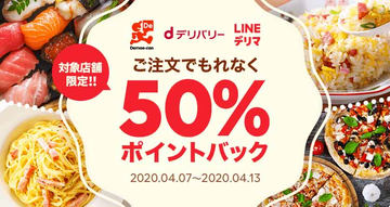 出前館・LINEデリマ・dデリバリー、大阪で地域限定50%還元