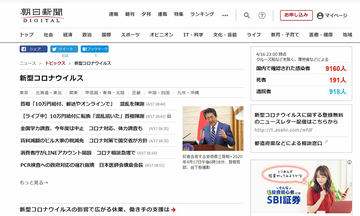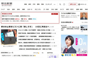 朝日新聞デジタル、全記事無料公開→新型コロナ関連全記事公開に