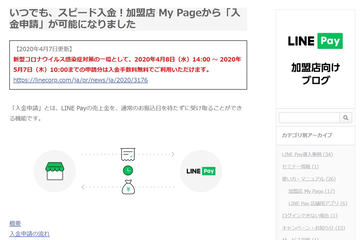 LINE Pay、「入金申請」無料化で加盟店支援。売上金を即受取可能
