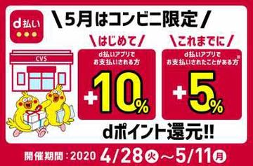d払い、コンビニで5~10%還元を4月28日から。初利用者は10%