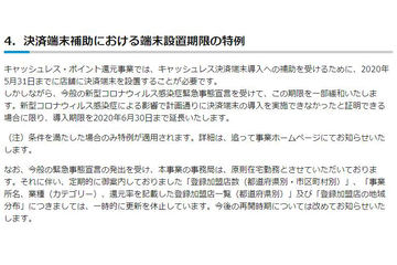キャッシュレス還元事業、決済端末設置期限を延長。新型コロナ影響