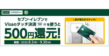 三井住友カード、セブン-イレブンで「Visaのタッチ決済」で500円還元
