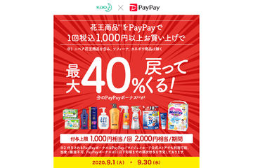 PayPay、花王商品購入で40%還元。ビオレ、アタック、メリーズ等