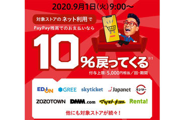 PayPay、9月はオンラインで10%還元。全額還元のジャンボも併催