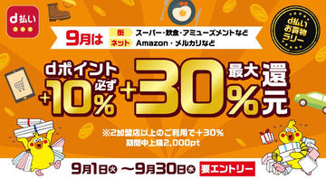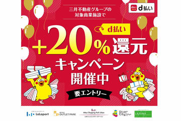 d払い、「ららぽーと」など三井不動産系商業施設で20%還元。9月6日まで