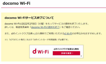 docomo Wi-Fi、2022年2月に終了。d Wi-Fiに移行を