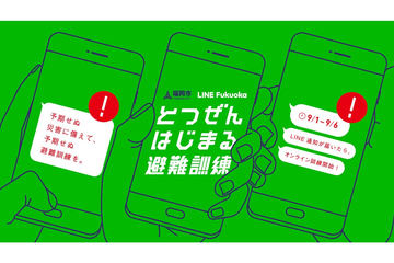 「とつぜんはじまる避難訓練」。LINEと福岡市が集まらない訓練