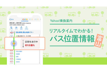Yahoo!乗換案内、富山県で全路線バスのリアルタイム遅延状況を表示