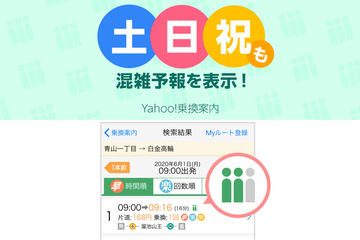 Yahoo!乗換案内、土日も「混雑予報」。検索結果に混み具合を表示