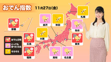 ウェザーニュース、おでんのおすすめ度を予報する「おでん指数」