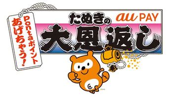 au PAY、12月から20%還元「たぬきの大恩返し」。マツキヨ、オーケー、百貨店
