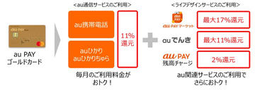 au PAYゴールドカードの特典強化。通信料金の11%還元など