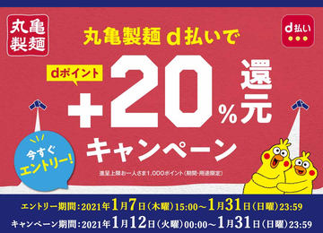 丸亀製麺、1月は「d払い」で20%還元。初のd払いは70%還元