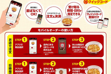 なか卯、持ち帰り専用「モバイルオーダー」。券売機に並ばず注文