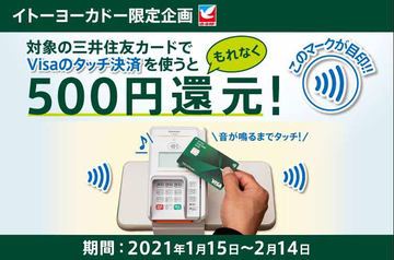 三井住友カード、イトーヨーカドーでVisaのタッチ決済で500円還元
