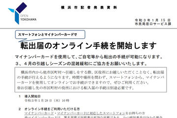 横浜市、マイナンバーカードによる転出届けのオンライン手続開始