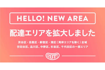フードデリバリー「Chompy」、新宿・目黒・世田谷などにエリア拡大