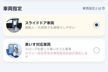 タクシーアプリ「GO」、スライドドアや車イス車両の指定配車対応