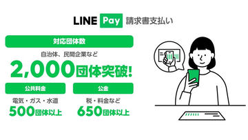 LINE Pay請求書払い、導入2000団体突破。69万人利用、6割女性