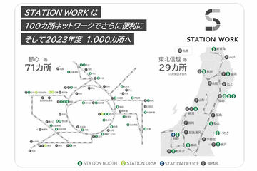 JR東シェアオフィス「STATION WORK」、東日本全域100カ所に