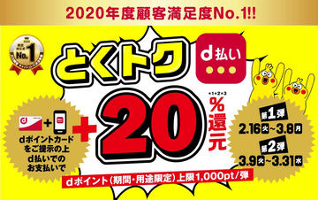 ドコモ、d払い+dポイントカードで20%還元。2月16日から