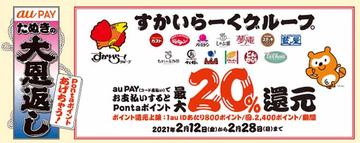 au PAY、2月はすかいらーくグループで20%還元。12日から