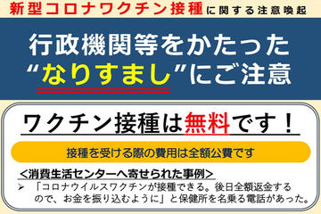 新型コロナワクチン接種に金銭を求める詐欺。消費者庁が注意喚起