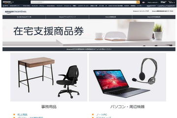 「Amazon 在宅支援商品券」開始。PC・イスなど限定のギフト券
