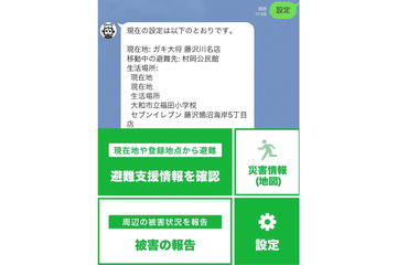 災害時の避難場所や行動をLINEで知らせる「AI防災支援システム」