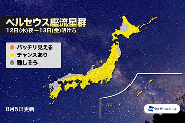 ペルセウス座流星群、13日ピーク。8年に1度の好条件も天気に不安