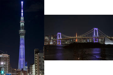 紫のスカイツリーやレインボーブリッジ。パラ開幕直前に「WeThe15」