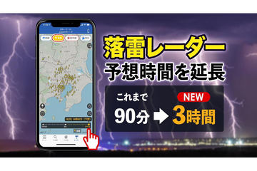 ウェザーニュース、「落雷レーダー」強化。3時間前から予想可能に