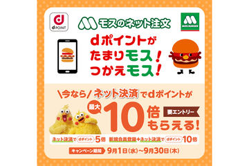 モスバーガー、ネット注文でdポイント利用可能に。最大10倍キャンペーン