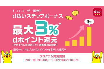 d払い、利用回数で還元率アップ。最大3%の「ステップボーナス」