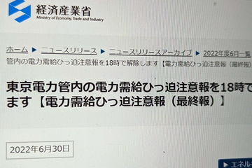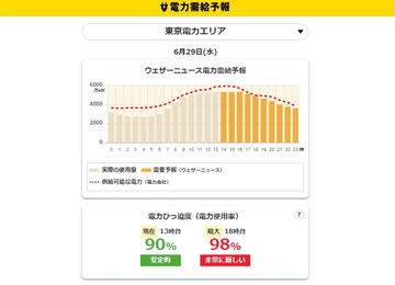 27日は東京エリアに「電力需給ひっ迫注意報」。15時~18時
