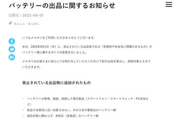 メルカリ、バッテリーが破損・故障したスマホや互換バッテリーなど出品禁止