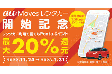 「au Moves レンタカー」開始 最大20%のPontaキャンペーンも