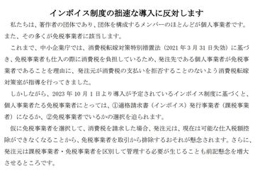 脚本家やシナリオ作家など6団体、インボイス制度反対で共同声明