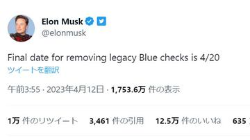 Twitter、旧青バッジの削除は4月20日 マスク氏がツイート