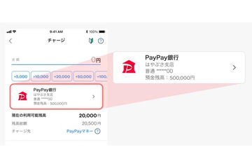PayPayアプリ、チャージ画面にPayPay銀行の残高表示