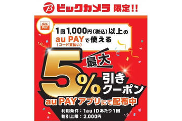 ビックカメラ、6月はau PAYで5%OFFクーポン(上限2000円) ECは10%還元