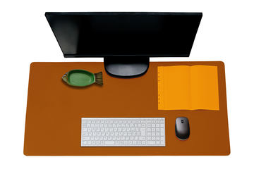 プラス、裏表で質感が異なるレザー調デスクマット さらりとしっとり