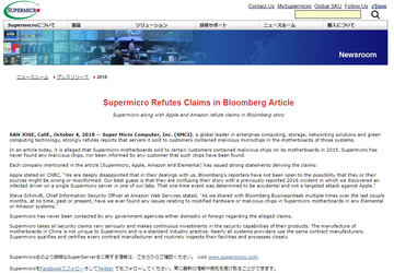Supermicroは、「これまで悪意のあるチップは発見していない。どのお客様からもそのようなチップが発見されたという報告は受けていない。この件に関して国内外の政府機関から連絡を受けたことはない」と反論している。