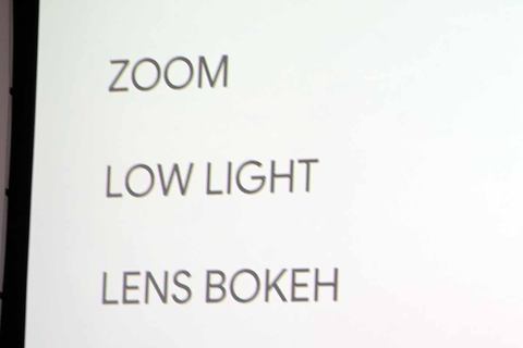 レイノルズ氏は、デジタル一眼とスマートフォンのカメラの違いとして「大きなレンズ」と「(イメージ)センサーサイズ」の2点であり、それらがもたらす効果が「ズーム」と「暗い場所での画質」、「ボケ味」の3点とする。