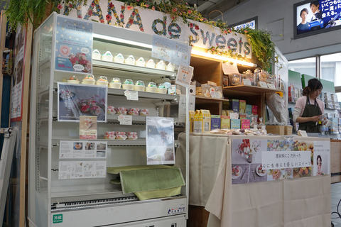 今回取材したHANA de Sweetsは、おもてなしスイーツ協会監修で、花のスイーツを軸に、ハーブティやアロマサッシュ、アロマキャンドルなどを販売。奥沢のプリン屋「MUKU」に、今回のために作ってもらった「ローズストロベリー」というオリジナルプリンも用意する。
