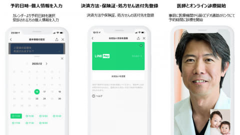 LINEビデオ通話を利用して医師の診察を受ける事ができるオンライン診療サービス。新たなアプリをダウンロードする必要がなく、医療機関の検索・予約から、診察、決済まで、LINEアプリ上でシームレスに行なえる。LINEへの利用対価は不要だが、処方箋による薬代や配送料などは別途必要。